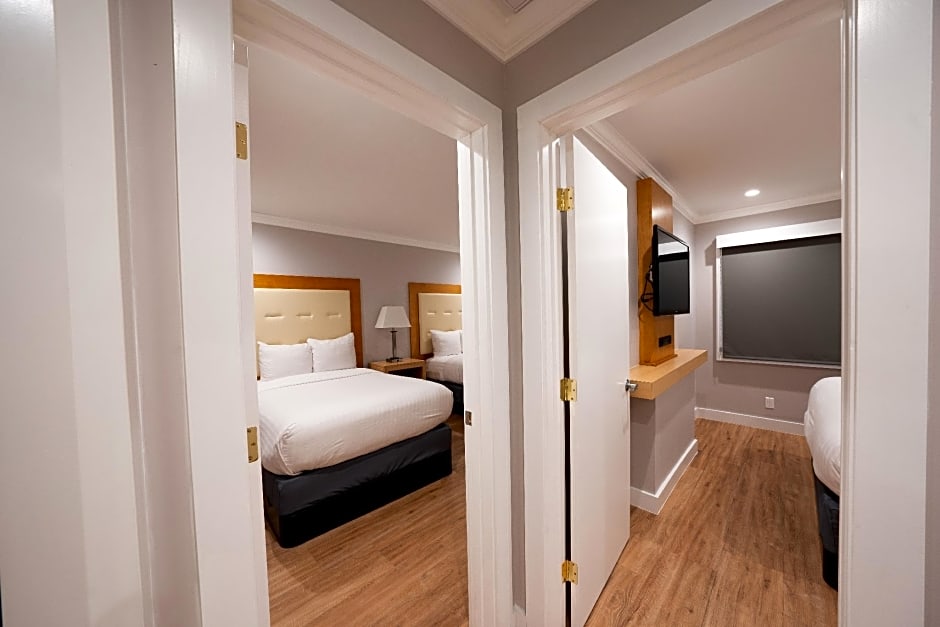 Offering free WiFi, this suite features 2 double-size beds, down comforters, a separate sitting area, a sofa bed and chairs. It includes a microwave, a refrigerator, a coffee/tea machine, a DVD player, an alarm clock radio, 2 flat-screen HDTV’s, ironing facilities and upscale bathroom amenities.